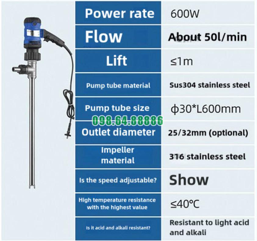 Bơm thùng phuy inox SUS304 JDT-600W có khả năng hoạt động hiệu quả với nhiều loại chất lỏng khác nhau: