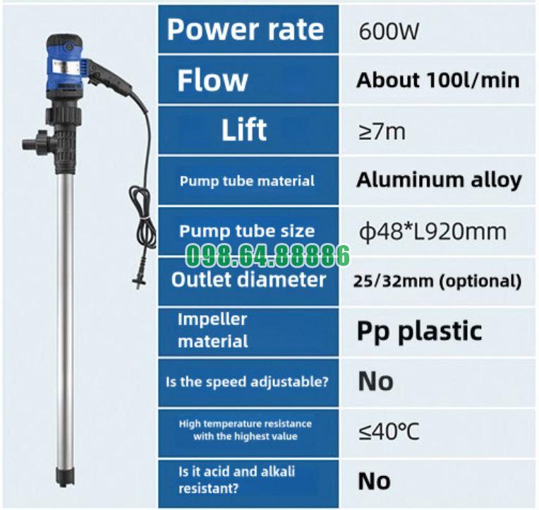 Máy bơm thùng phuy điện model JDT-L92-600W được thiết kế tối ưu cho quá trình vận hành và bảo trì trong môi trường công nghiệp. Một trong những ưu điểm nổi bật nhất của model này là khả năng tháo lắp đơn giản, nhanh chóng và không đòi hỏi kỹ thuật phức tạp. Điều này giúp người dùng rút ngắn thời gian vệ sinh, thay thế phụ kiện và khắc phục sự cố khi cần thiết.