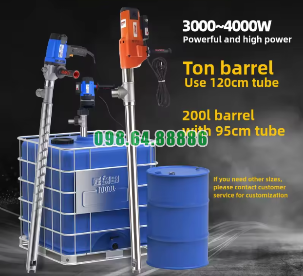 Máy có thể dùng cho thùng phuy 200 lít và cả thùng tấn, nhờ chiều dài ống bơm có thể tùy chỉnh. Đây là ưu điểm rất thực tế trong ngành nhựa đường, nơi quy cách thùng chứa có thể khác nhau tùy nhu cầu sử dụng.