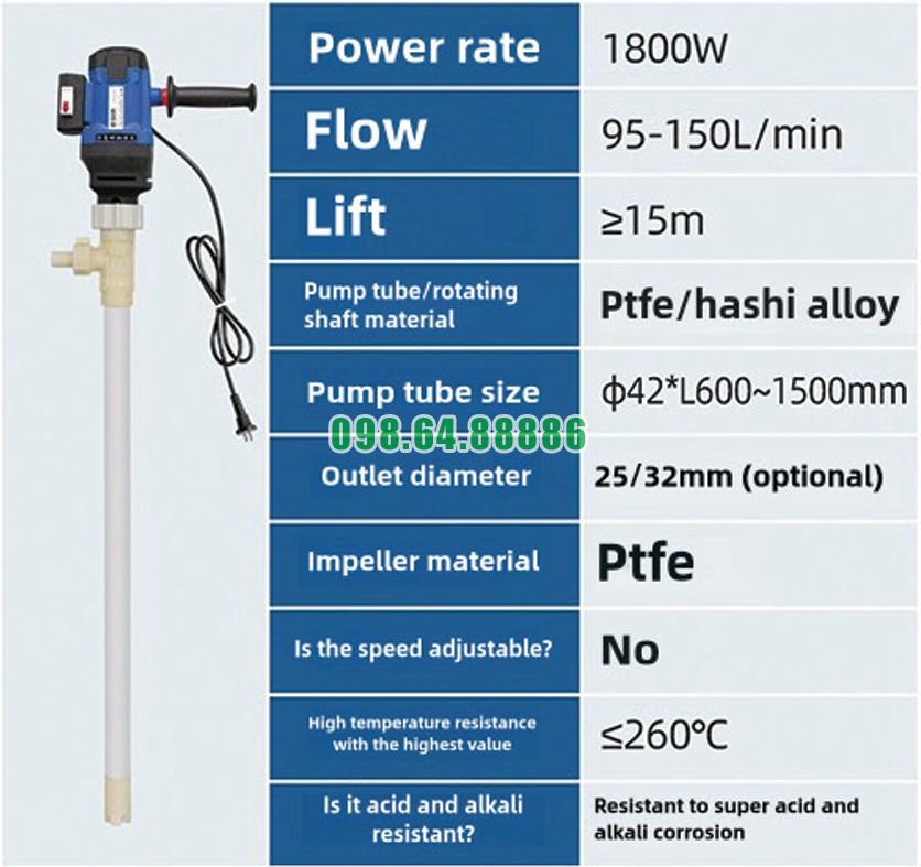 Để tối ưu hóa hiệu quả của Bơm điện thùng phuy 200L JDT-1800W-PTFE, cần kết hợp lắp đặt đúng kỹ thuật, sử dụng nguồn điện ổn định, lựa chọn hóa chất phù hợp và bảo trì định kỳ. Khi vận hành đúng cách, thiết bị sẽ phát huy tối đa công suất 1800W, duy trì lưu lượng 95–150L/phút và đảm bảo độ bền cao trong môi trường hóa chất khắc nghiệt.