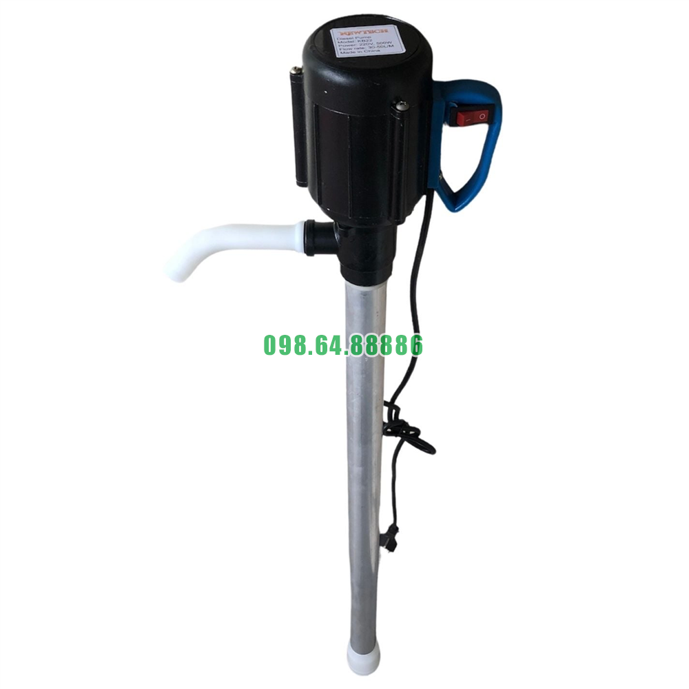 Máy bơm cần được đặt thẳng đứng vào thùng phuy 200L, với ống bơm dài 900mm và đường kính Φ53mm, giúp máy dễ dàng tiếp cận phần chất lỏng dưới đáy thùng. Đảm bảo rằng ống bơm được đặt đúng vị trí để máy có thể hút tối đa lượng chất lỏng, tránh việc máy không hoạt động hết công suất.