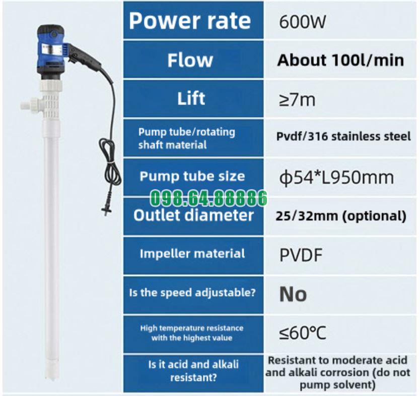 Máy bơm phuy dầu – nước đa năng JDT-600W-PVDF