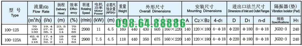 Máy bơm trục thẳng đứng, bơm inline, bơm đồng trục đứng ISG100-125, IRG100-125 11kw, 100m3, 20m