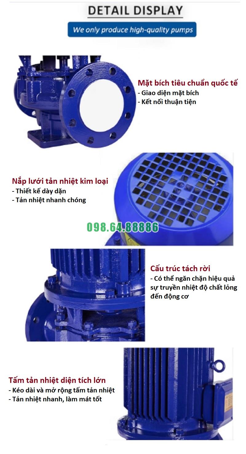 Máy bơm đồng trục thẳng đứng, bơm tăng áp, inline ISG100-100, IRG100-100 5.5kw, 100m3, 12.5m