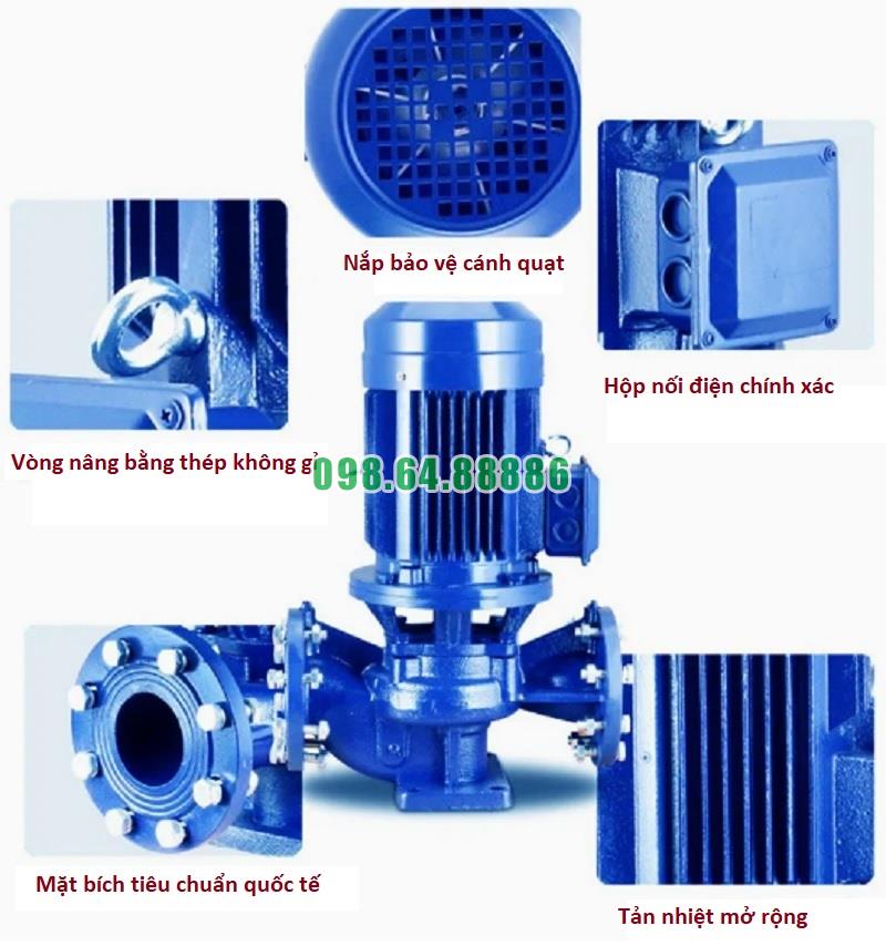 Máy bơm inline, bơm tăng áp, bơm cấp nước trục đứng ISG65-250, IRG65-250 15kw