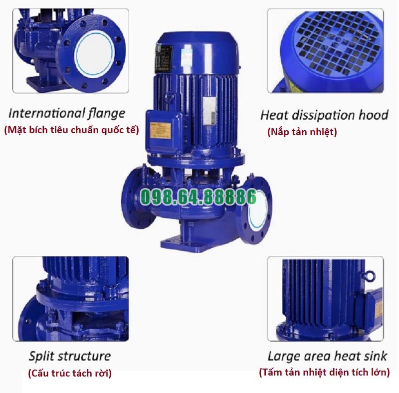 Máy bơm trục thẳng đứng, bơm inline, bơm đồng trục đứng ISG100-125, IRG100-125 11kw, 100m3, 20m